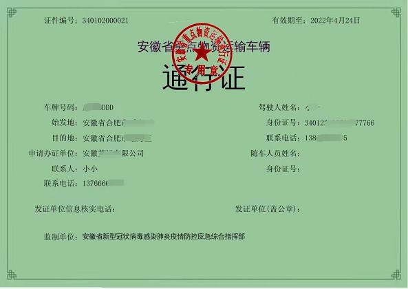 按照省疫情防控應急綜合指揮部辦公室要求,安徽即日起正式啟用全國統一式樣的通行證。