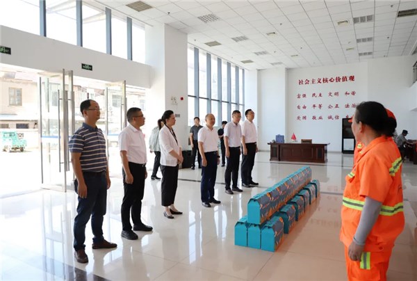 在尚富廣場辦公大廳,嵇文一行看望慰問了辛勤工作的環衛工人,詳細詢問了他們的工作和生活情況。他指出,環衛工人是城市的“守護者”,為城市的整潔和美麗作出了重要貢獻,希望大家在日常清掃工作時要合理安排工作時間,盡可能避開高溫時段,注意防暑降溫、保重身體。