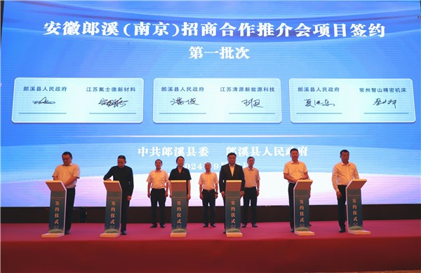9月25日下午,安徽郎溪(南京)招商合作推介會在南京舉辦??h委書記嵇文出席儀式并見證簽約。李少中、陳良龍、潘俊、夏繼東、柯鳴、章澤等縣領導出席儀式。