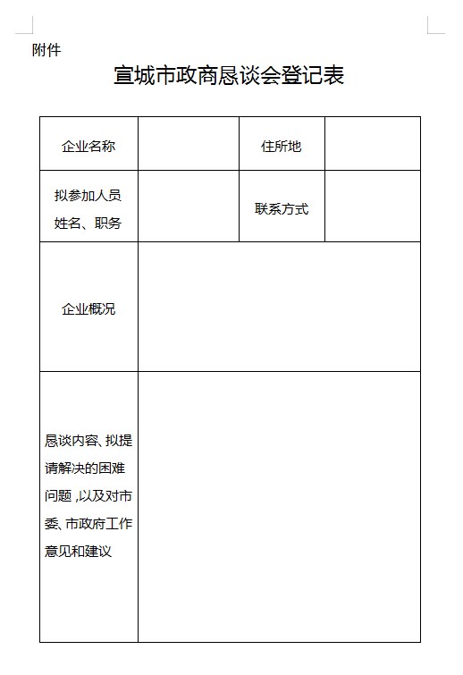 附件:宣城市政商懇談會登記表