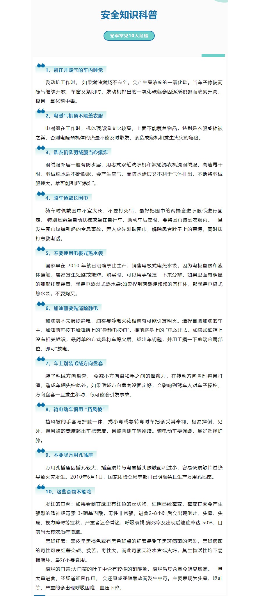 【安全專欄】安全知識科普——冬季常見10大危險