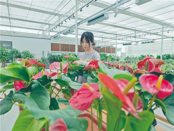 工作人員在管理花卉