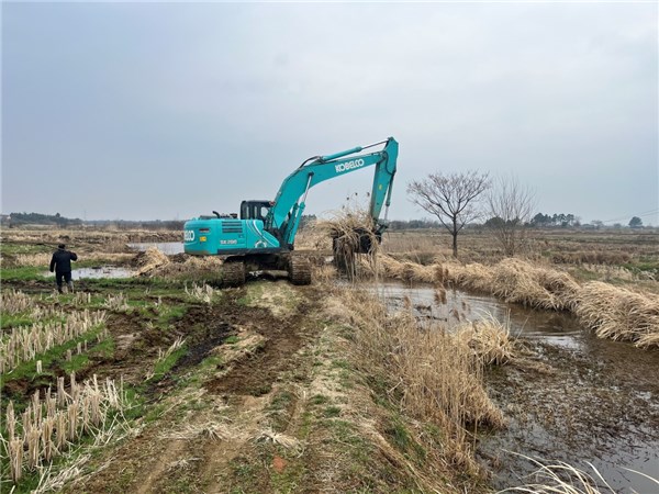 2025年2月27日,桃園村水利設(shè)施提升工程正式啟動(dòng)施工。工程涵蓋三項(xiàng)重點(diǎn)內(nèi)容:對王村壩700米河道進(jìn)行全面清淤,打通灌溉“動(dòng)脈”;對2畝王村大塘實(shí)施清淤擴(kuò)容,深挖塘體增加蓄水空間;對7.5畝成子塘開展清淤擴(kuò)容,同步修整岸坡保障安全。施工中采用“機(jī)械清淤+人工修整”的高效作業(yè)模式,機(jī)械負(fù)責(zé)深層淤泥快速清理,人工則細(xì)致修整岸坡、清除塘內(nèi)垃圾雜物,確保整治效果扎實(shí)長效。