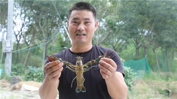 村民展示收獲的澳龍。余克儉 攝