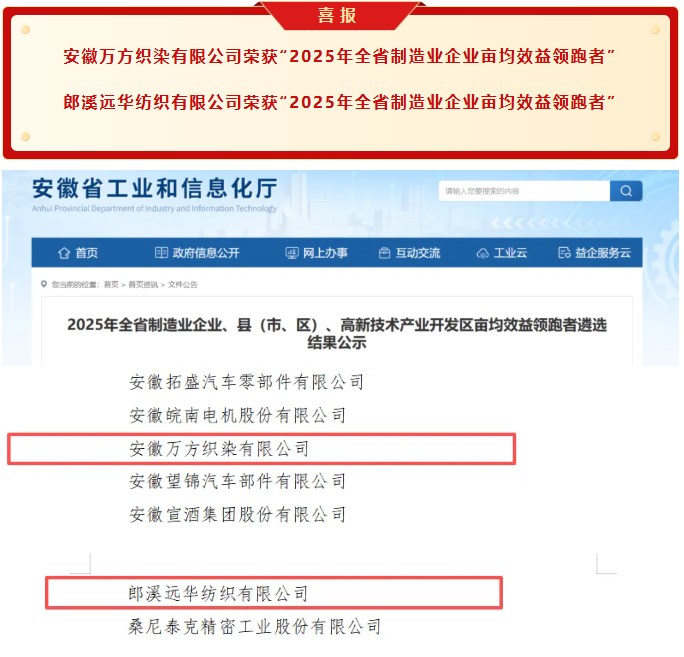 10月24日,安徽省工業和信息化廳正式公示2025年全省制造業企業、縣(市、區)、高新技術產業開發區畝均效益領跑者名單,振奮人心的喜訊傳來——十字鎮兩大優質企業成功獲評!