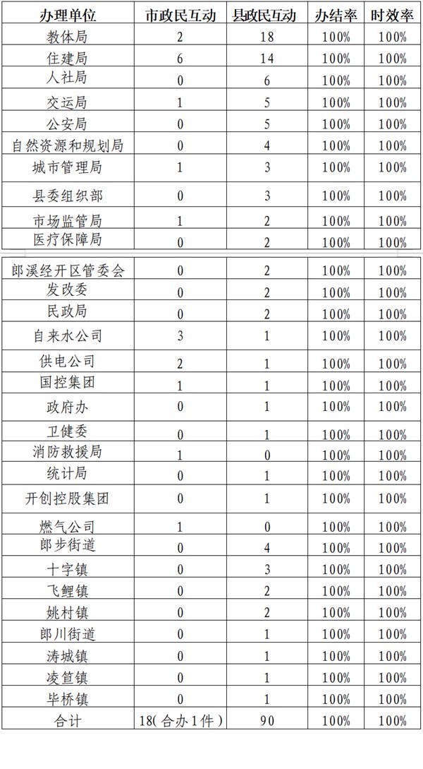 2025年7-9月份,我縣共辦理市政民互動欄目信件18件、縣政民互動欄目信件90件?,F將各單位政民互動辦理情況予以通報: