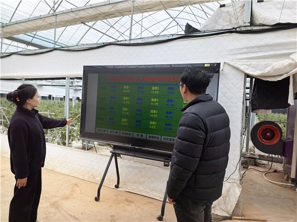 除了溫控技術,基地的智慧化管理更體現在水肥管控上。走進水肥一體化控制房,數個金屬桶整齊排列,各類管線縱橫相連,電控機柜信號燈不停閃爍,電機低鳴著平穩運轉。梅偉只需在控制柜上輕輕一點,即可為藍莓實施精準滴灌施肥。這套自主研發系統,與數字平臺無縫對接,推動基地生產管理向“云端”智慧化又邁進了一大步。
