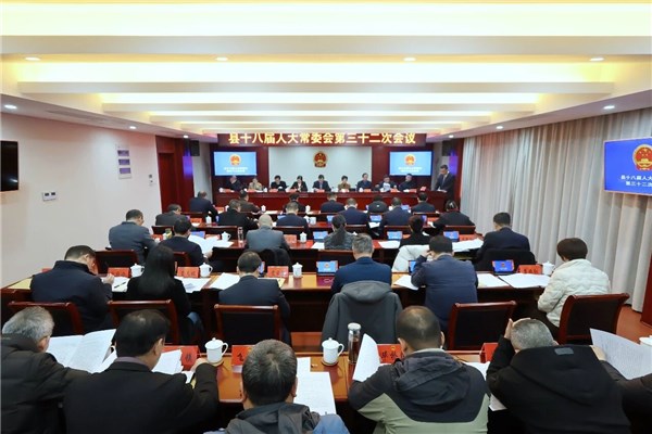 12月30日,縣十八屆人大常委會第三十二次會議召開。縣人大常委會主任李少中主持會議,副主任宛冬梅、楊明珍、張沛、陳玉平及縣人大常委會委員共28人出席會議。縣政府副縣長李暉,縣人民法院院長劉燕,縣人民檢察院檢察長劉偉棟,縣監察委員會、縣政府辦負責人,各鎮人大主席、副主席,各街道人大工委主任,部分縣人大代表列席會議。