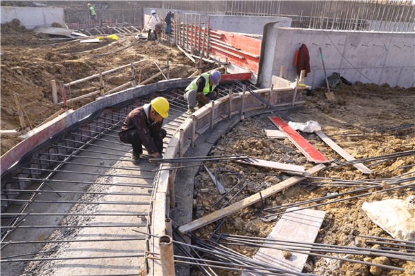 1月24日,寒意襲人,郎溪縣凌笪鎮(zhèn)王橋村強(qiáng)村壩水利工程施工現(xiàn)場(chǎng)熱氣騰騰,工人們正有序捆扎鋼筋,挖掘機(jī)忙著清理河道。