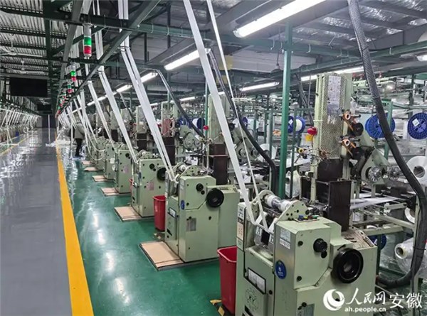走進位于郎溪飛馬工業織品有限公司,織帶車間里的機器一字排開,伴著沙沙作響聲,織帶機正滿負荷運轉。