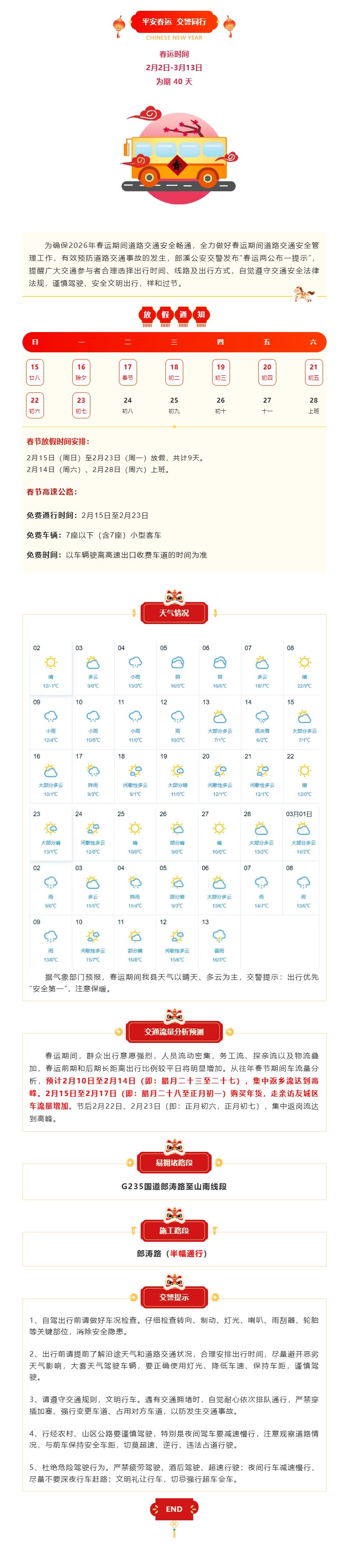 郎溪公安交警發布“春運兩公布一提示”