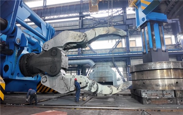 車間深處,一臺約數層樓高的“巨無霸”尤為醒目——這是該公司核心裝備16500噸重型壓力機,其規模在國內位居前列。記者看到,工人正操作機械巨鉗調整鍛件位置,不遠處,精加工車間工人正在操作鏜銑加工中心進行金屬精加工作業。該壓力機具備鍛造300噸級超大型鍛件的整體制造能力。