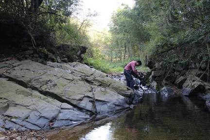 億萬年前,地殼運動,姚村鄉妙泉村一清橋周邊的粒砂巖層與水榨橋周邊的花崗巖層相互撞擊,最后形成了變質巖,生成了許許多多墨黑色的石頭。這些墨黑色的石頭,正是宣硯之石。