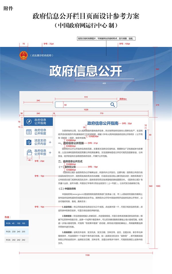 中國政府網運行中心根據上述要求設計了“政府信息公開欄目頁面設計參考方案”,供參考使用。
