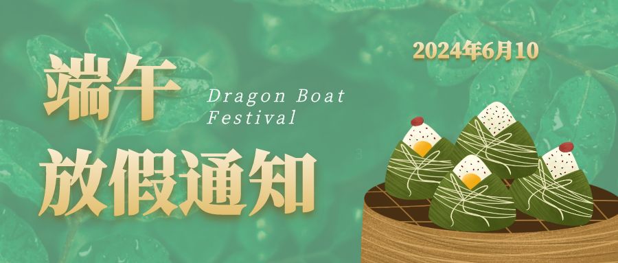 根據(jù)國(guó)家法定節(jié)假日的規(guī)定,并結(jié)合我司實(shí)際情況,現(xiàn)將公司2024年端午節(jié)放假安排告知如下:6月8日-10日放假調(diào)休,共3天;2024年6月11日正常上班。