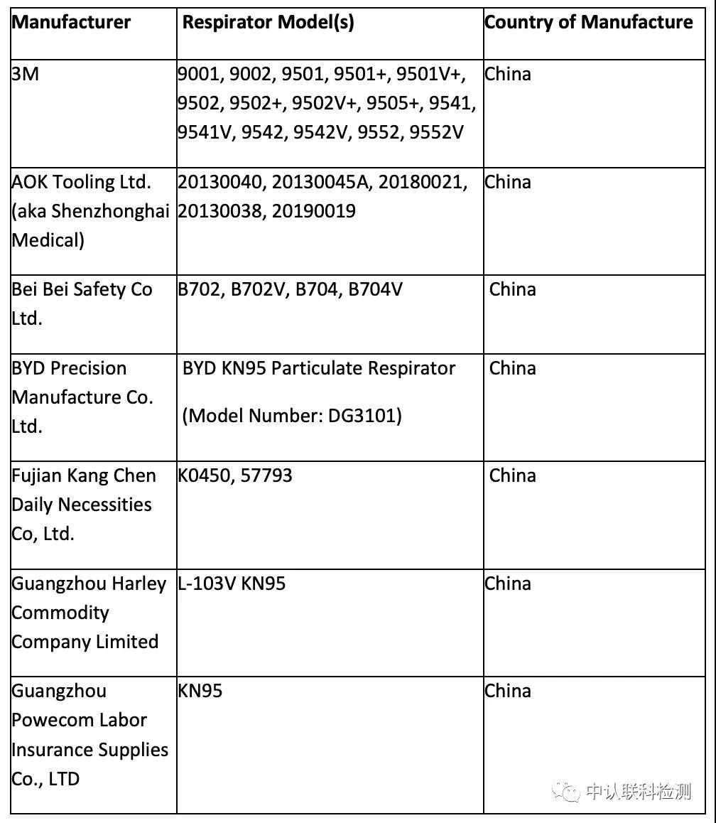 5月7日FDA再次修改了其在4月3日發(fā)布的中國KN95(FFR)口罩認可規(guī)則。并對之前發(fā)布在白名單(Appendix A)中的產(chǎn)品進行了更新,由原本的74家白名單突然只剩下14家了!原因無外乎是根據(jù)最近一次CDC(NIOSH)的抽驗結(jié)果,有不少來自中國的KN95口罩的過濾效率出了問題。下面我們一起來看一下那些廠家經(jīng)住了FDA+CDC的雙重考驗,仍能留在磅單之上。